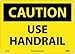 - Caution Signage: this sign instructs people to use handrail. It can be used to mark inclined platforms or staircases to prevent people from injuring themselves by tripping or slipping