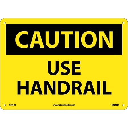 NMC C191RB OSHA Sign, Legend "CAUTION - USE HANDRAIL", 14" Length x 10" Height, Rigid Plastic, Black on Yellow