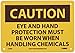 - Header "CAUTION" and legend "EYE AND HAND PROTECTION MUST BE WORN WHEN HANDING CHEMICALS"