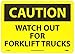| Feature | Header "CAUTION" and legend "WATCH OUT FOR FORKLIFT TRUCKS" |