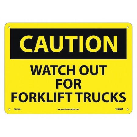 NMC C215AB CAUTION - WATCH OUT FOR FORK LIFT TRUCKS - 14 in. x 10 in. Standard Aluminum Caution Sign with Yellow/Black Text on Black/Yellow Base