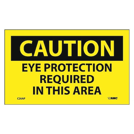 NMC C26AP OSHA Sign, Legend "CAUTION - EYE PROTECTION REQUIRED IN THIS AREA", 5" Length x 3" Height, Pressure Sensitive Vinyl, Black on Yellow (Pack of 5)