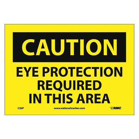 NMC C26P OSHA Sign, Legend "CAUTION - EYE PROTECTION REQUIRED IN THIS AREA", 10" Length x 7" Height, Pressure Sensitive Vinyl, Black on Yellow