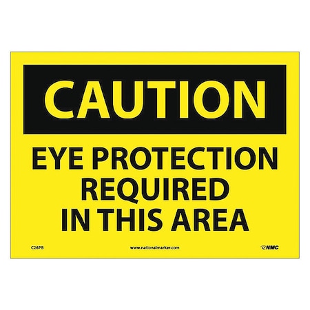 NMC C26PB OSHA Sign, Legend "CAUTION - EYE PROTECTION REQUIRED IN THIS AREA", 14" Length x 10" Height, Pressure Sensitive Vinyl, Black on Yellow