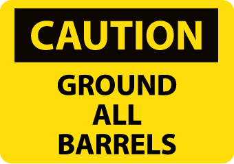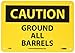 NMC C28R OSHA Sign, Legend "CAUTION - GROUND ALL BARRELS", 10" Length x 7" Height, Rigid Plastic, Black on Yellow