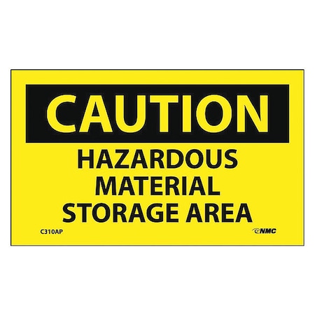 NMC C310AP OSHA Sign, "CAUTION HAZARDOUS MATERIAL STORAGE AREA", 5" Width x 3" Height, Pressure Sensitive Vinyl, Black On Yellow (Pack of 5)