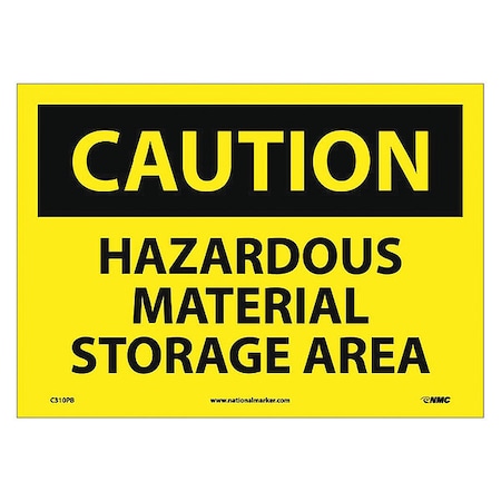NMC C310PB OSHA Sign, Legend "CAUTION - HAZARDOUS MATERIAL STORAGE AREA", 14" Length x 10" Height, Pressure Sensitive Vinyl, Black on Yellow