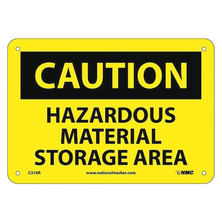 NMC C310R OSHA Sign, Legend "CAUTION - HAZARDOUS MATERIAL STORAGE AREA", 10" Length x 7" Height, Rigid Plastic, Black on Yellow