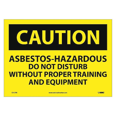 NMC C312PB OSHA Sign, Legend "CAUTION - ASBESTOS-HAZARDOUS DO NOT DISTURB WITHOUT PROPER TRAINING AND EQUIPMENT", 14" Length x 10" Height, Pressure Sensitive Vinyl, Black on Yellow