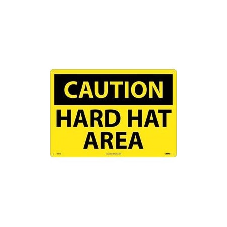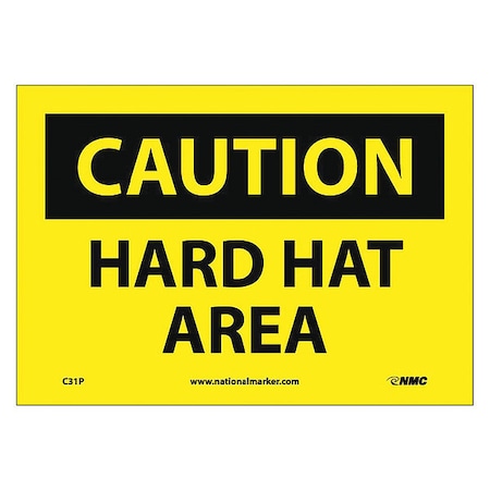 NMC C31P OSHA Sign, Legend "CAUTION - HARD HAT AREA", 10" Length x 7" Height, Pressure Sensitive Vinyl, Black on Yellow