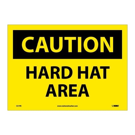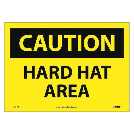NMC C31PB OSHA Sign, Legend "CAUTION - HARD HAT AREA", 14" Length x 10" Height, Pressure Sensitive Vinyl, Black on Yellow