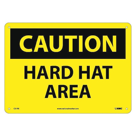 NMC C31RB OSHA Sign, "CAUTION HARD HAT AREA", 14" Width x 10" Height, Rigid Plastic, Black On Yellow