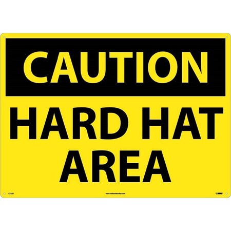 NMC C31RC OSHA Sign, Legend "CAUTION - HARD HAT AREA", 20" Length x 14" Height, Rigid Plastic, Black on Yellow