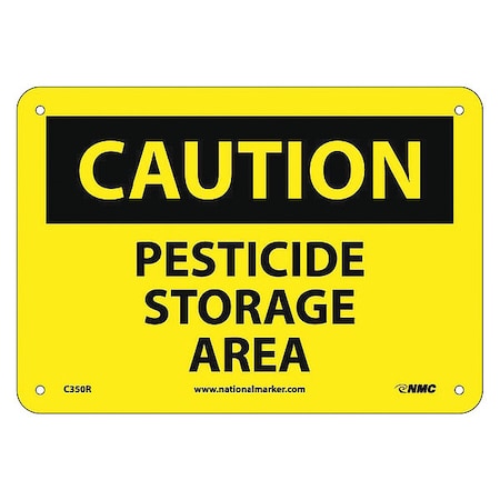 NMC C350R OSHA Sign, Legend "CAUTION - PESTICIDE STORAGE AREA", 10" Length x 7" Height, Rigid Plastic, Black on Yellow