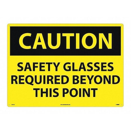 NMC C351AD OSHA Sign, Legend "CAUTION - SAFETY GLASSES REQUIRED BEYOND THIS POINT", 28" Length x 20" Height, Aluminum, Black on Yellow