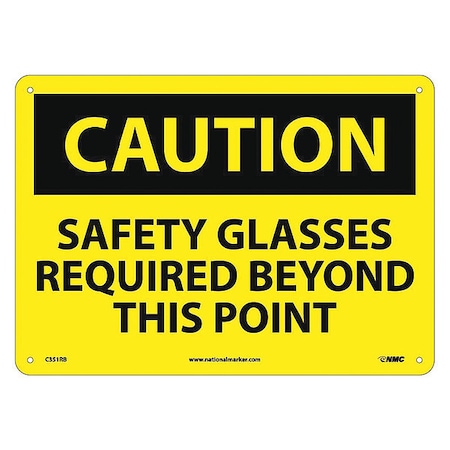 NMC C351RB OSHA Sign, Legend "CAUTION - SAFETY GLASSES REQUIRED BEYOND THIS POINT", 14" Length x 10" Height, Rigid Plastic, Black on Yellow