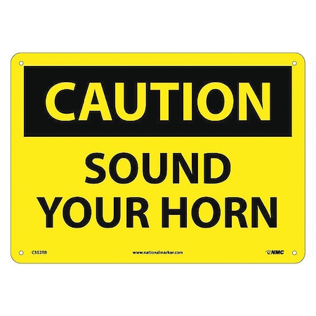 NMC C352RB OSHA Sign, Legend "CAUTION - SOUND YOUR HORN", 14" Length x 10" Height, Rigid Plastic, Black on Yellow