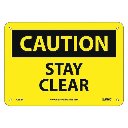 NMC C353R OSHA Sign, Legend "CAUTION - STAY CLEAR", 10" Length x 7" Height, Rigid Plastic, Black on Yellow