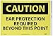 | Feature | Header "CAUTION" and legend "EAR PROTECTION REQUIRED BEYOND THIS POINT" |