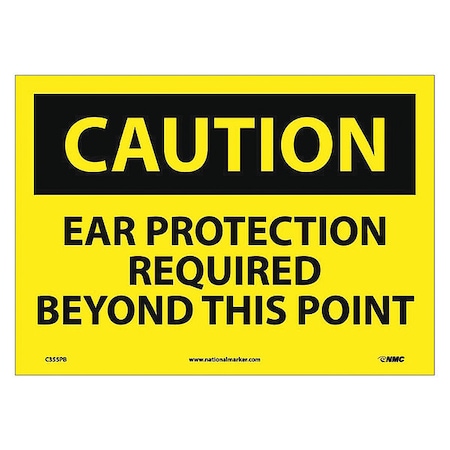 NMC C355PB OSHA Sign, Legend "CAUTION - CAUTION EAR PROTECTION REQUIRED BEYOND THIS POINT", 14" Length x 10" Height, Pressure Sensitive Adhesive Vinyl, Black on Yellow