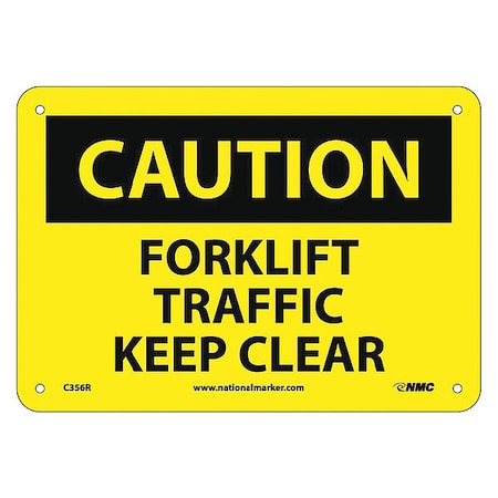 NMC C356R OSHA Sign, Legend "CAUTION - FORKLIFT TRAFFIC KEEP CLEAR", 10" Length x 7" Height, Rigid Plastic, Black on Yellow