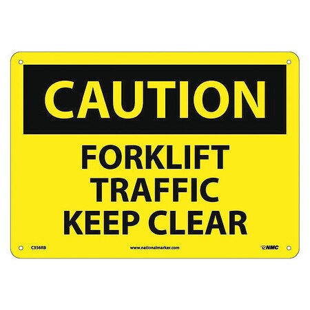 NMC C356RB OSHA Sign, Legend "CAUTION - FORKLIFT TRAFFIC KEEP CLEAR", 14" Length x 10" Height, Rigid Plastic, Black on Yellow
