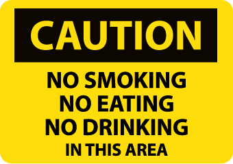 | Feature | Header "CAUTION" and legend "NO SMOKING NO EATING NO DRINKING IN THIS AREA" |