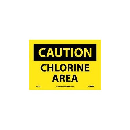NMC C371RB OSHA Sign, Legend "CAUTION - CHLORINE AREA", 14" Length x 10" Height, Rigid Plastic, Black on Yellow