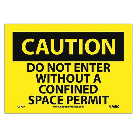 NMC C373P OSHA Sign, Legend "CAUTION - DO NOT ENTER WITHOUT A CONFINED SPACE PERMIT", 10" Length x 7" Height, Pressure Sensitive Adhesive Vinyl, Black on Yellow