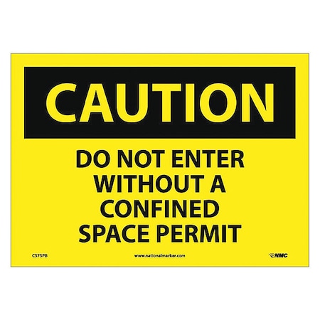 NMC C373PB OSHA Sign, Legend "CAUTION - DO NOT ENTER WITHOUT A CONFINED SPACE PERMIT", 14" Length x 10" Height, Pressure Sensitive Adhesive Vinyl, Black on Yellow