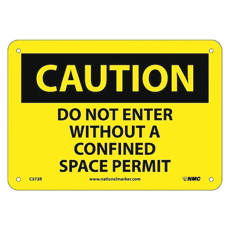 NMC C373R OSHA Sign, Legend "CAUTION - DO NOT ENTER WITHOUT A CONFINED SPACE PERMIT", 10" Length x 7" Height, Rigid Plastic, Black on Yellow