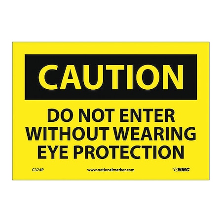 NMC C374P OSHA Sign, Legend "CAUTION - DO NOT ENTER WITHOUT WEARING EYE PROTECTION", 10" Length x 7" Height, Pressure Sensitive Adhesive Vinyl, Black on Yellow