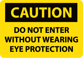- Header "CAUTION" and legend "DO NOT ENTER WITHOUT WEARING EYE PROTECTION"