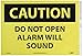 - Header "CAUTION" and legend "DO NOT OPEN ALARM WILL SOUND"