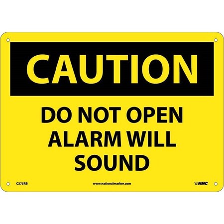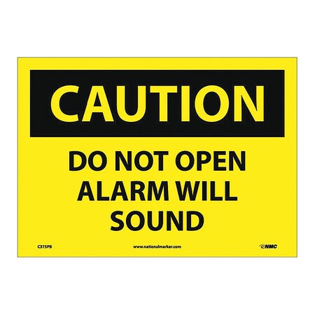 NMC C375PB OSHA Sign, Legend "CAUTION - DO NOT OPEN ALARM WILL SOUND", 14" Length x 10" Height, Pressure Sensitive Adhesive Vinyl, Black on Yellow