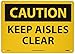 - Caution Sign: the sign instructs employees and visitors about keeping the aisles clear. It is often used in passageways with sustained footfalls. Commonly seen at workplaces and retail locations, this sign remind people about not crowding the aisle