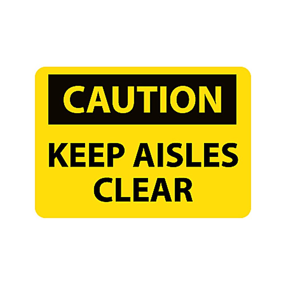 - Caution Sign: the sign instructs employees and visitors about keeping the aisles clear. It is often used in passageways with sustained footfalls. Commonly seen at workplaces and retail locations, this sign remind people about not crowding the aisle