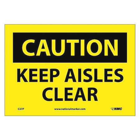 NMC C37P CAUTION - KEEP AISLES CLEAR - 10 in. x 7 in. PS Vinyl Caution Signage with Black Text on Yellow Base