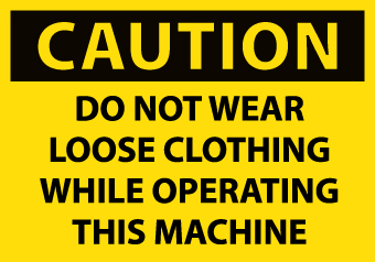 - Header "CAUTION" and legend "DO NOT WEAR LOOSE CLOTHING WHILE OPERATING THIS MACHINE"