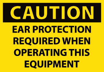 - Header "CAUTION" and legend "EAR PROTECTION REQUIRED WHEN OPERATING THIS EQUIPMENT"