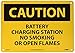 | Feature | Header "CAUTION" and legend "BATTERY CHARGING STATION NO SMOKING OR OPEN FLAMES" |