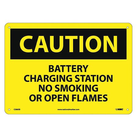 NMC C386EB CAUTION - BATTERY CHARGING STATION NO SMOKING OR OPEN FLAMES Sign - 14 in. x 10 in., Black Text on Yellow, Fiberglass Caution Sign