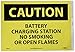 | Feature | Header "CAUTION" and legend "BATTERY CHARGING STATION NO SMOKING OR OPEN FLAMES" |
