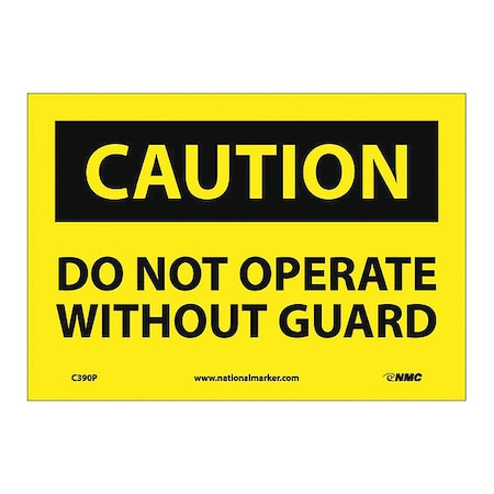 NMC C390P OSHA Sign, Legend "CAUTION - DO NOT OPERATE WITHOUT GUARD", 10" Length x 7" Height, Pressure Sensitive Adhesive Vinyl, Black on Yellow