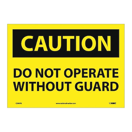 NMC C390PB OSHA Sign, Legend "CAUTION - DO NOT OPERATE WITHOUT GUARD", 14" Length x 10" Height, Pressure Sensitive Adhesive Vinyl, Black on Yellow