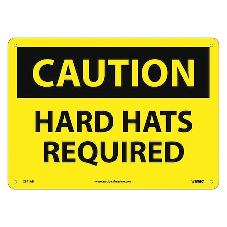 NMC C391AB OSHA Sign, Legend "CAUTION - HARD HATS REQUIRED", 14" Length x 10" Height, Aluminum, Black on Yellow