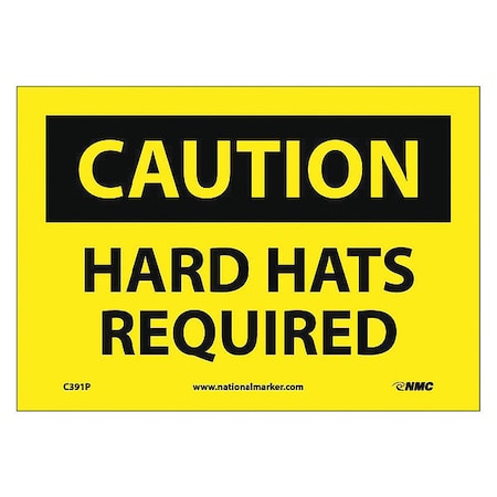 NMC C391P CAUTION - HARD HATS REQUIRED Sign - 10 in. 7 in. PS Vinyl Sign with Black Text on Yellow Base