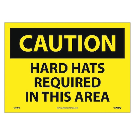 NMC C392PB OSHA Sign, Legend "CAUTION - HARD HATS REQUIRED IN THIS AREA", 14" Length x 10" Height, Pressure Sensitive Adhesive Vinyl, Black on Yellow