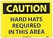 | Feature | Header "CAUTION" and legend "HARD HATS REQUIRED IN THIS AREA" |