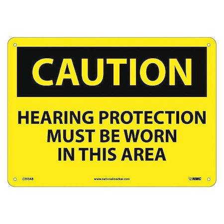 NMC C393AB OSHA Sign, Legend "CAUTION - HEARING PROTECTION MUST BE WORN IN THIS AREA", 14" Length x 10" Height, Aluminum, Black on Yellow